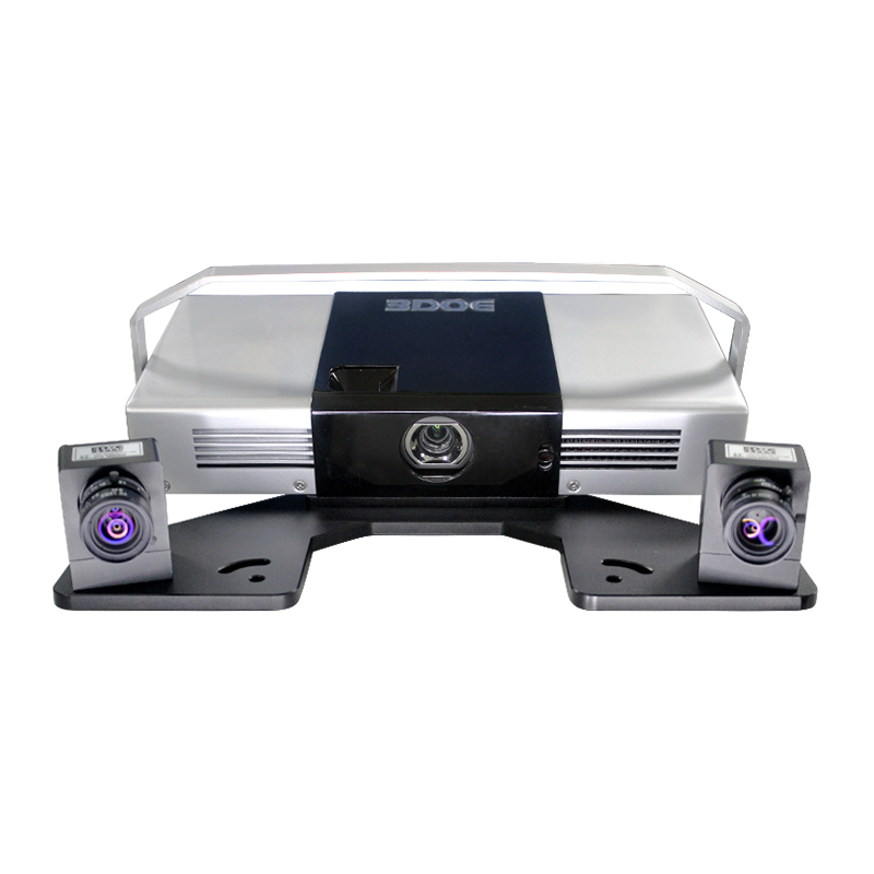 The 3DOE 3D measuring head is composed of two high-resolution industrial CCD cameras on the left and right and a grating projection unit. The structured light measurement method is used to project a group of grating fringes with phase information onto the surface of the measured object using the grating projection unit. The two cameras on the left and right can measure simultaneously, and combine computer vision technology, photoelectric sensor technology, image processing technology and software control technology to obtain high-density three-dimensional data on the surface of the object in a very short time. The rotating object or scanning head is used to change the scanning angle of view. Based on the automatic splicing technology of multi-view point cloud, it can complete 360° scanning of the object in all directions.